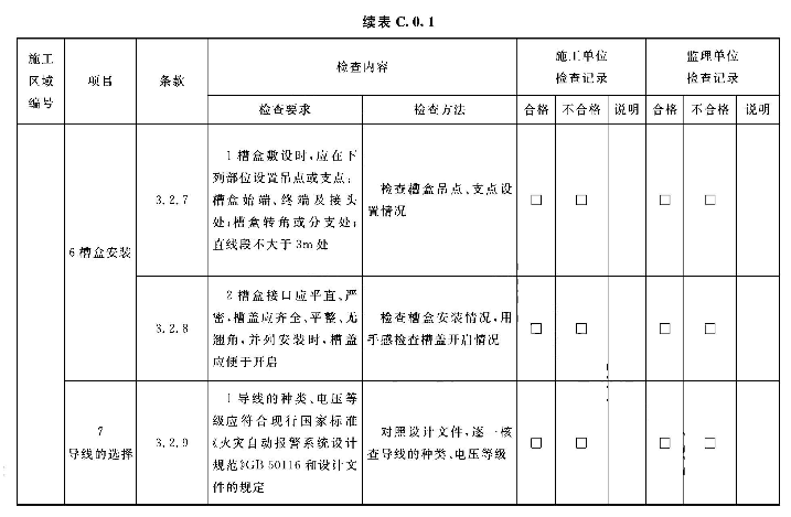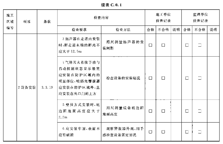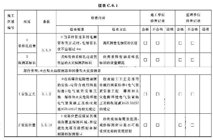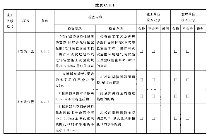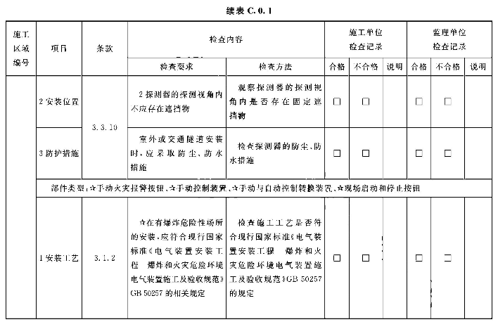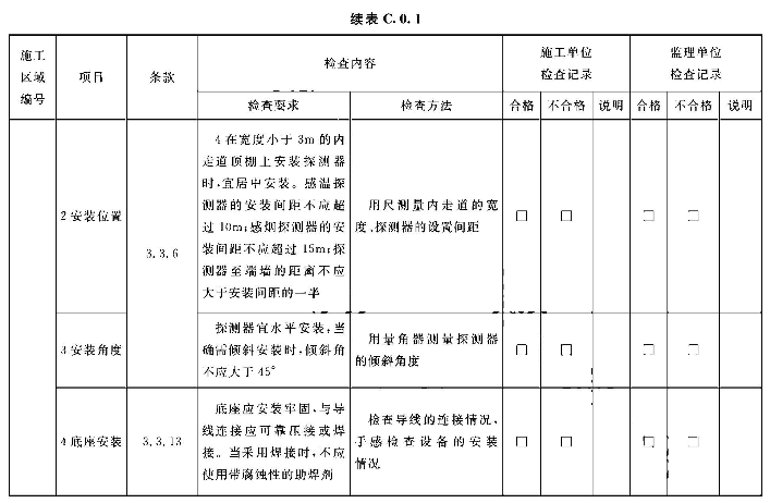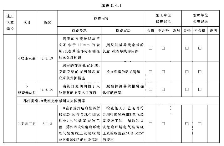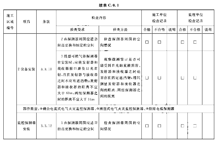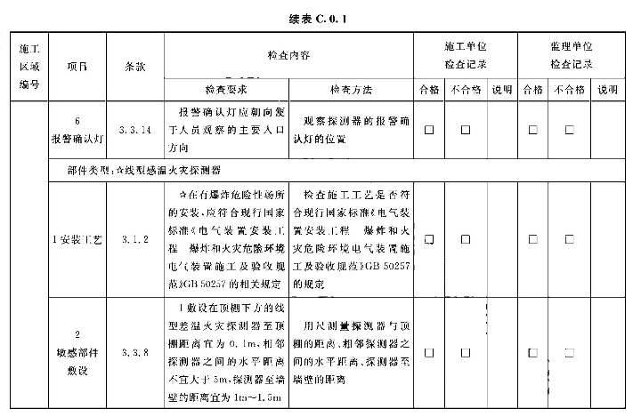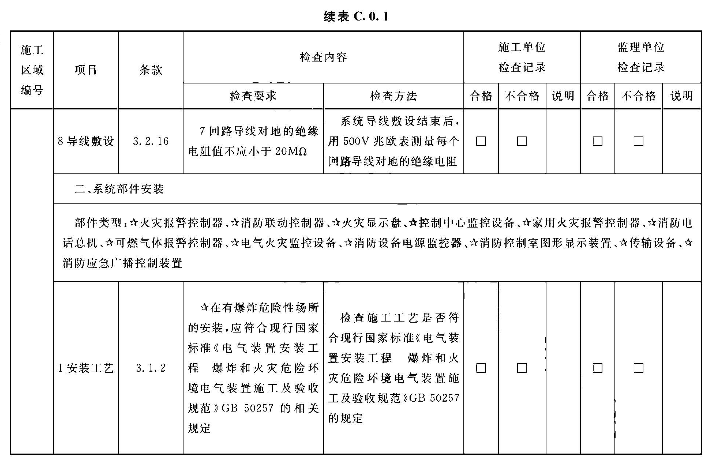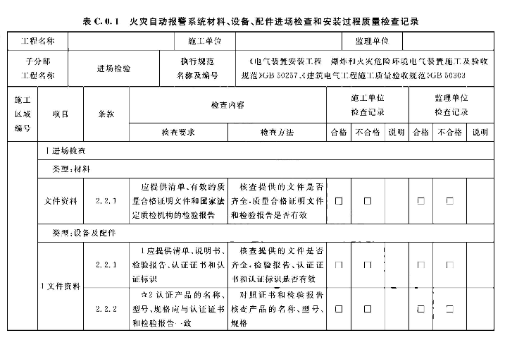 附录C 火灾自动报警系统材料、设备、配件进场检查和安装过程质量检查记录