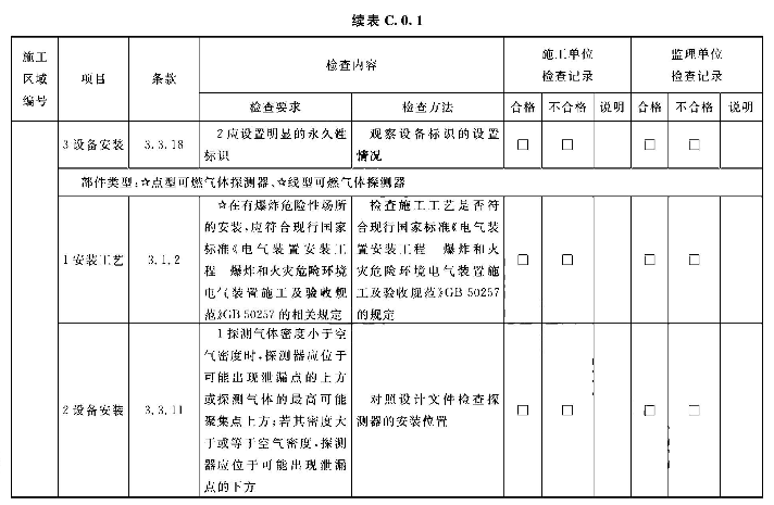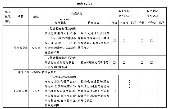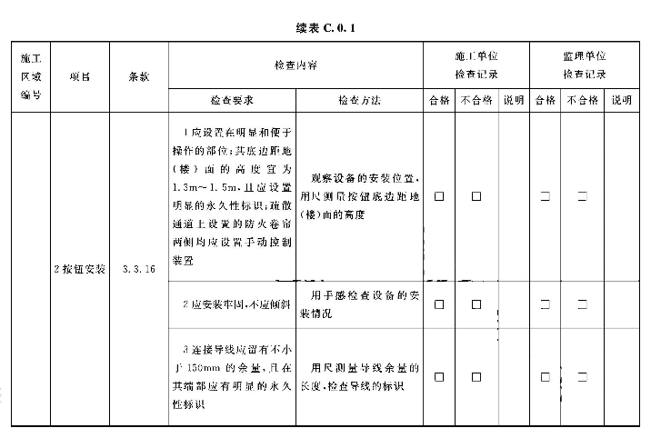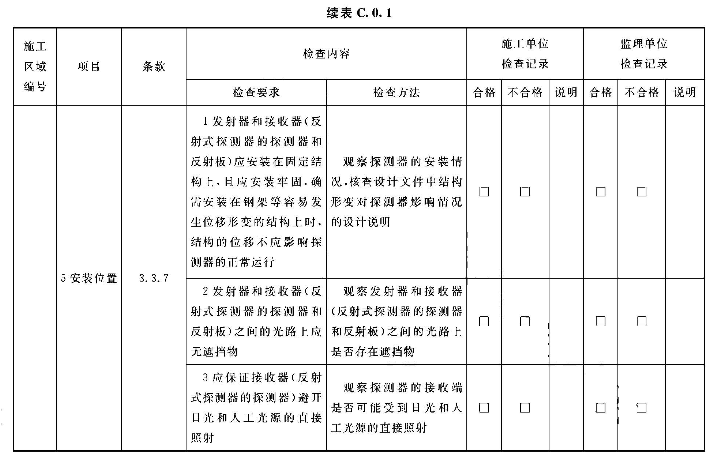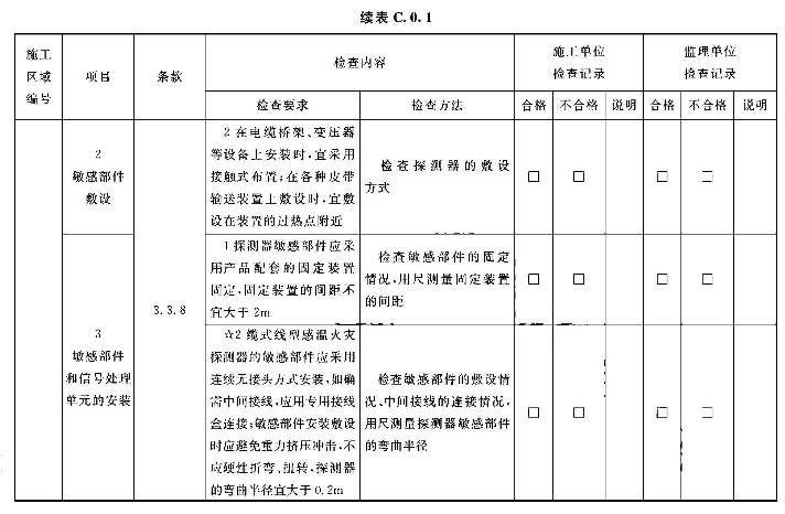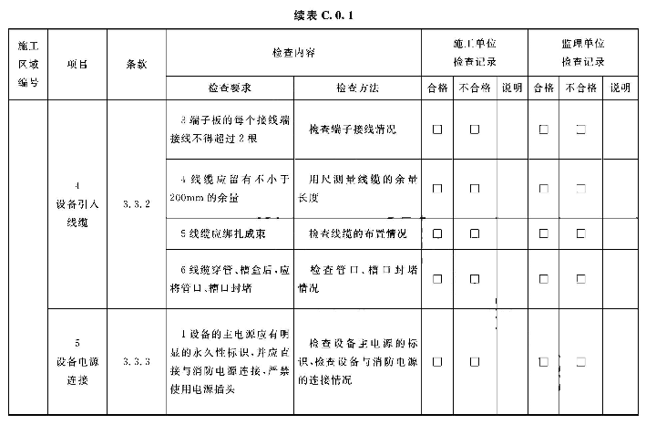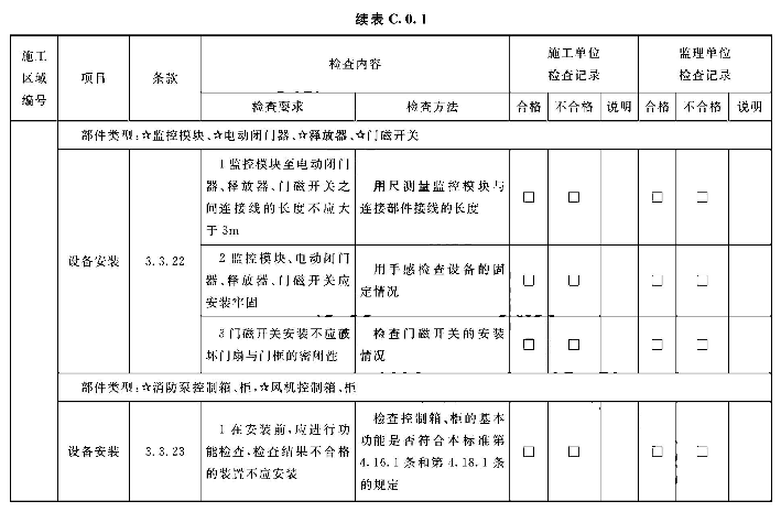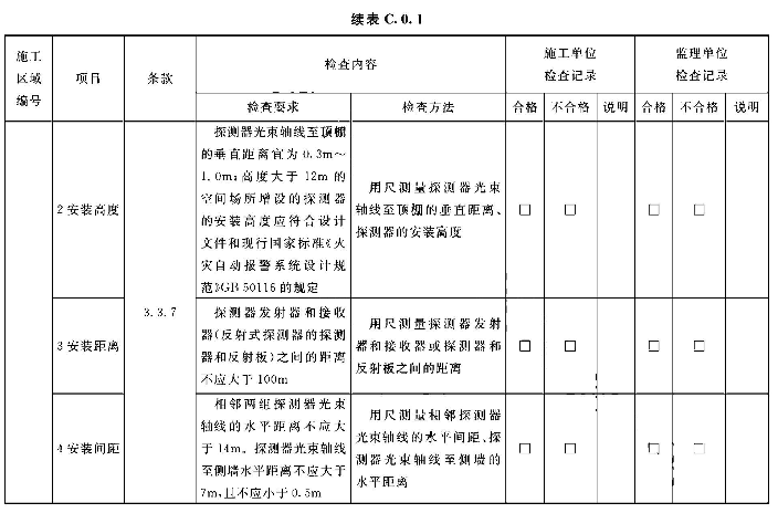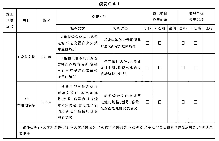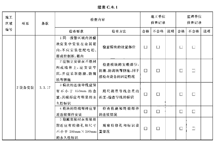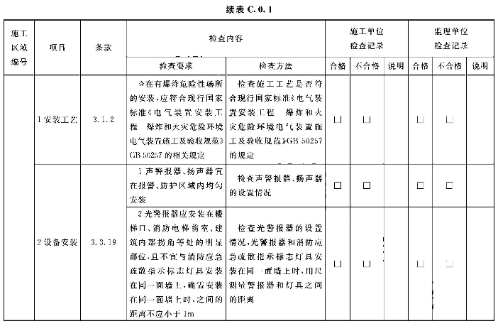 附录C 火灾自动报警系统材料、设备、配件进场检查和安装过程质量检查记录