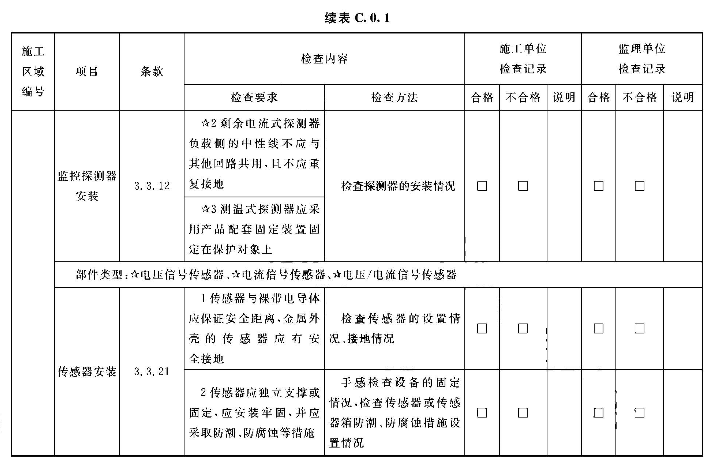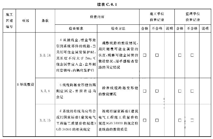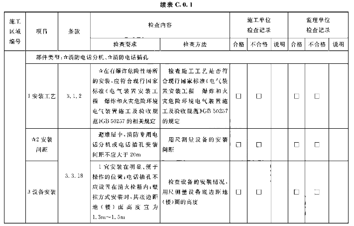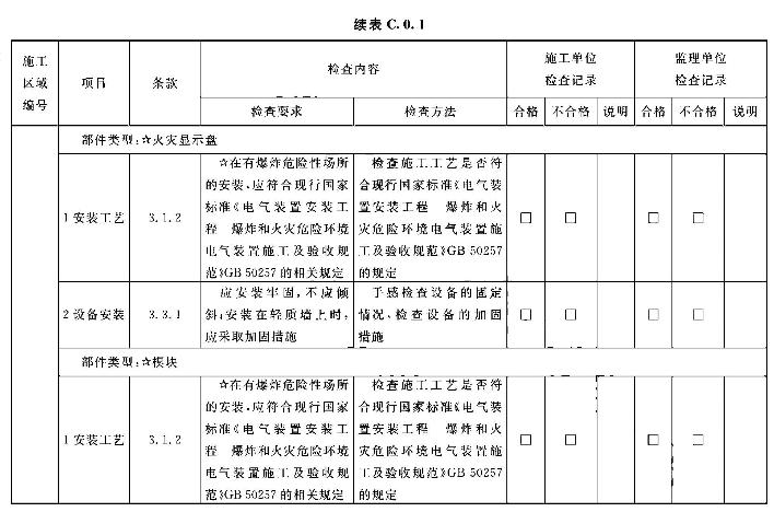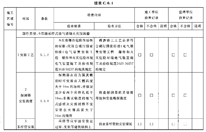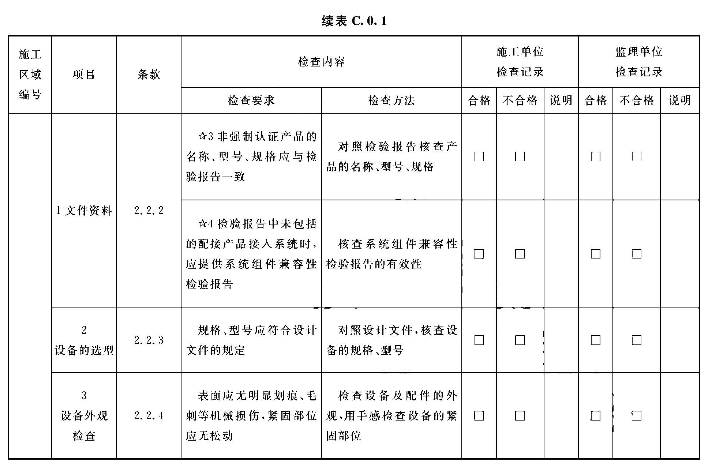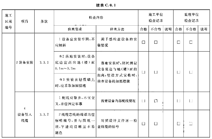C.0.3 表C.0.1中带有“☆”标的项目和检查内容为可选项,当系统的进场检验、安装不涉及此项目或检查肉容时,检查记录不包括此项目或检查内容。