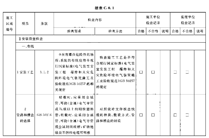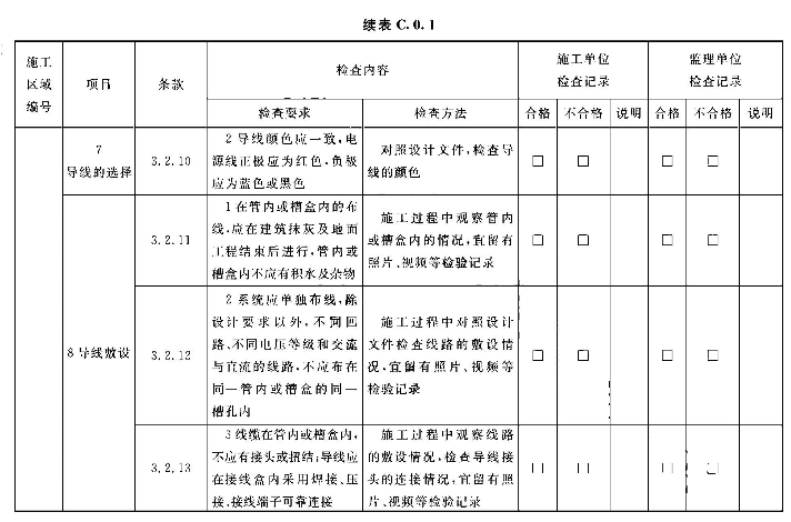 C.0.2 施工单位的质量检查员和监理工程师应根据检查结果,在对应记录框中勾选相应的记录项☐(☑),对不符合检查内容要求的项目,应做出不合格说明。