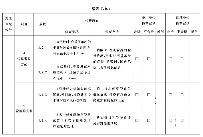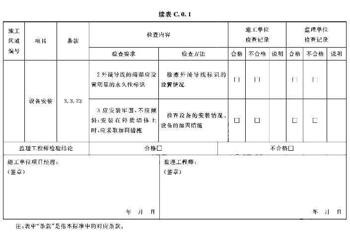 C.0.1 施工单位质量检查员和监理工程师应按表C.0.1的规定逐项填写检查记录,监理工程师应根据检查情况填写检查结论,施工单位项目负责人、监理工程师应对检查结果确认签章。