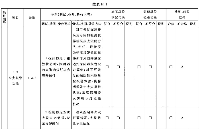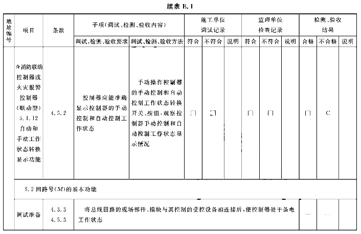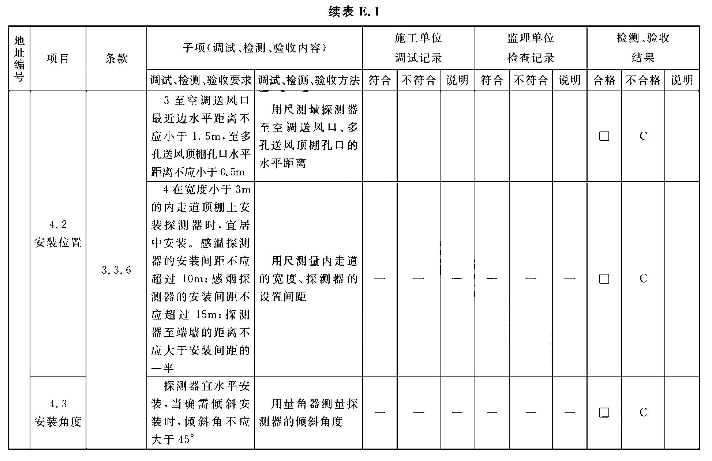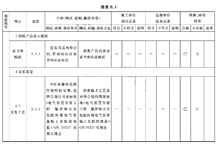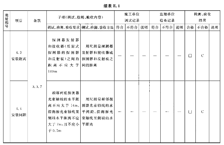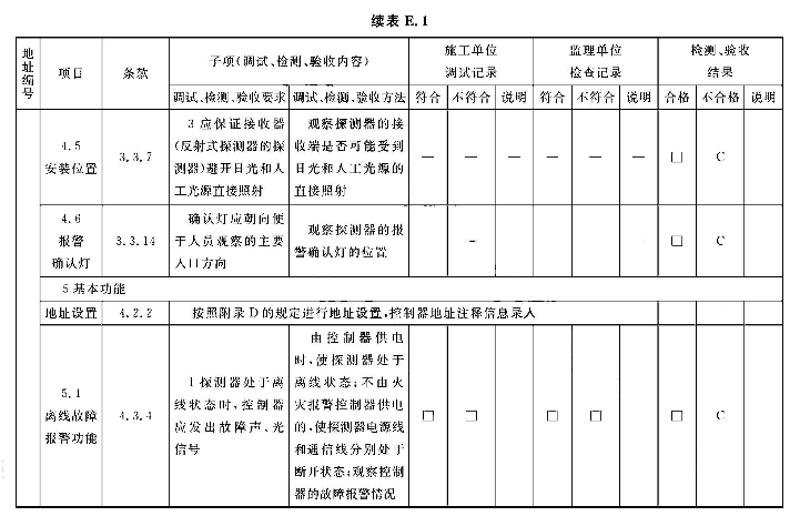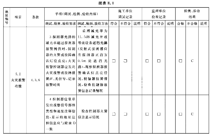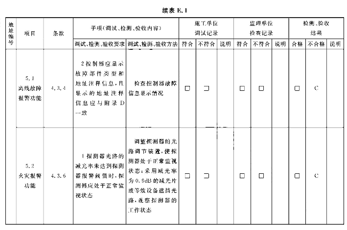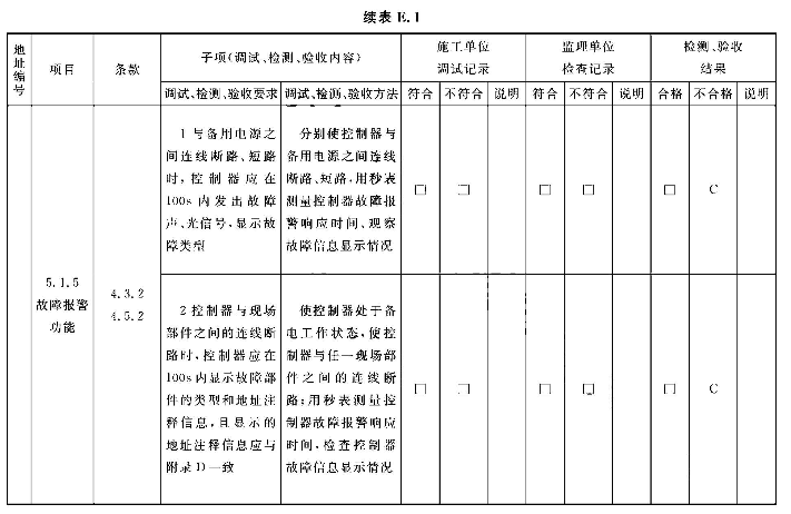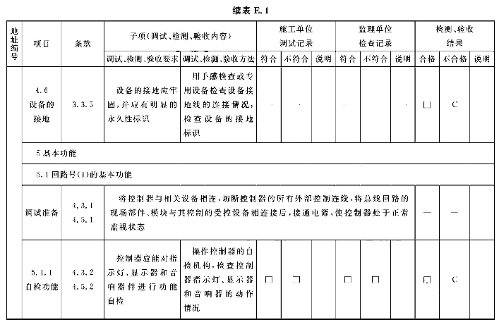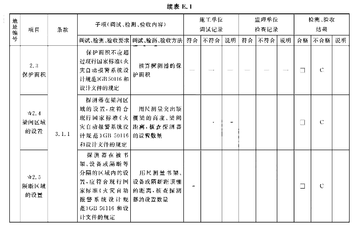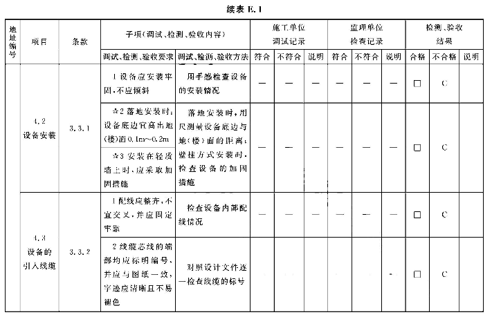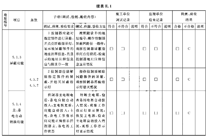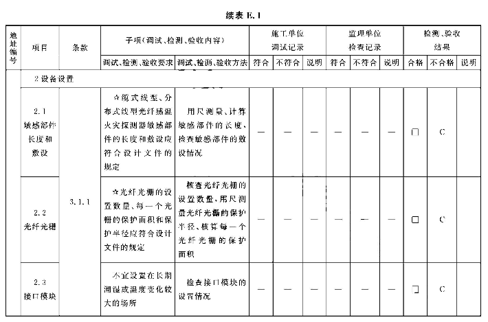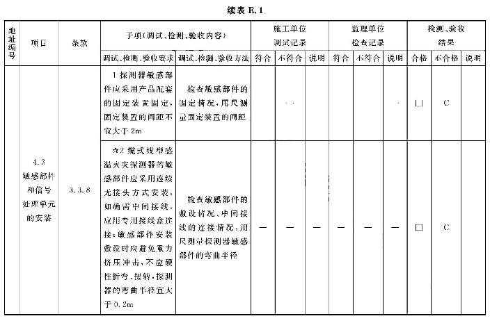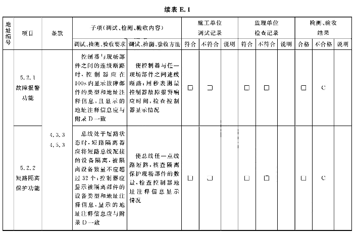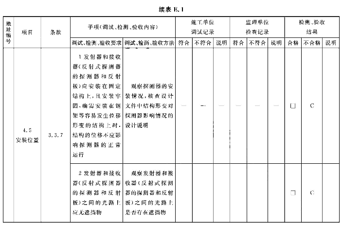 E.0.3 本附录各表中带有“☆”标的项目和子项内容为可选项,当现场部件的调试、工程检测、工程验收不涉及此项目或子项时,调试、检测、验收记录不包括此项目或子项。