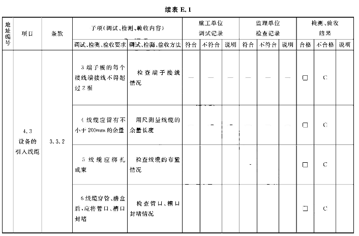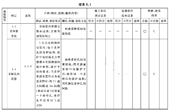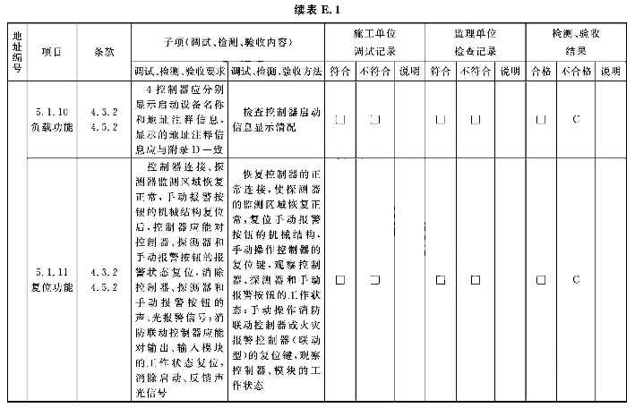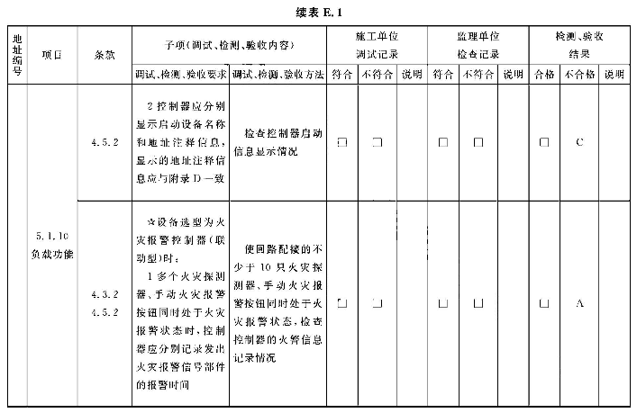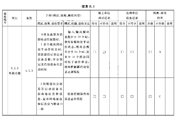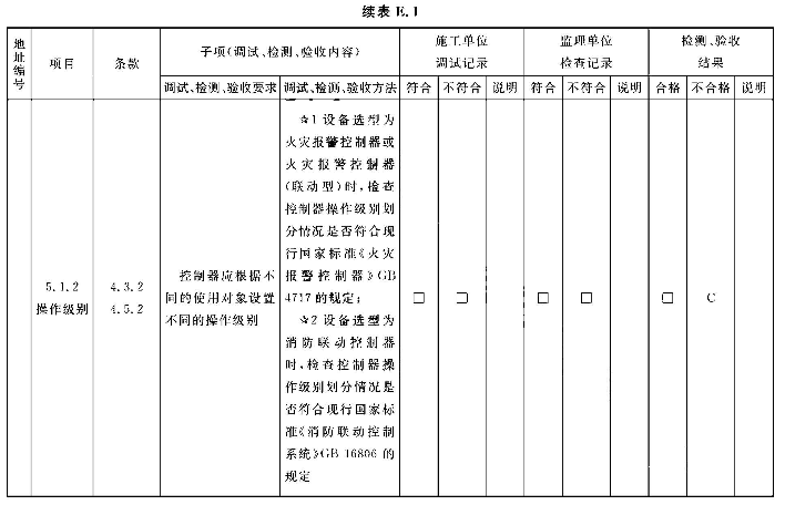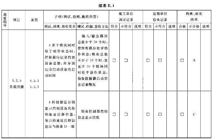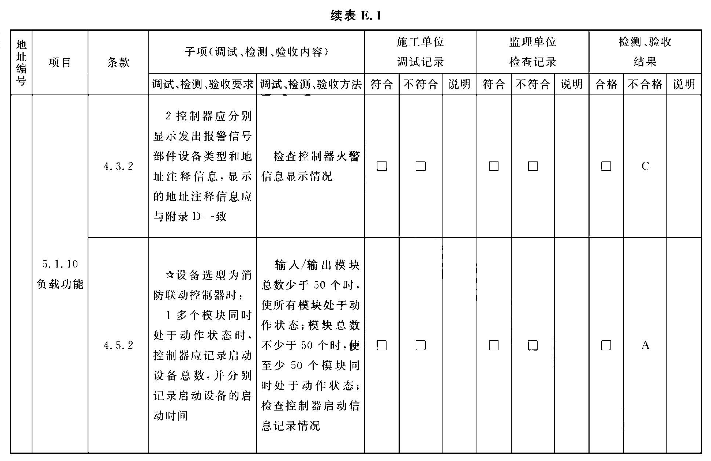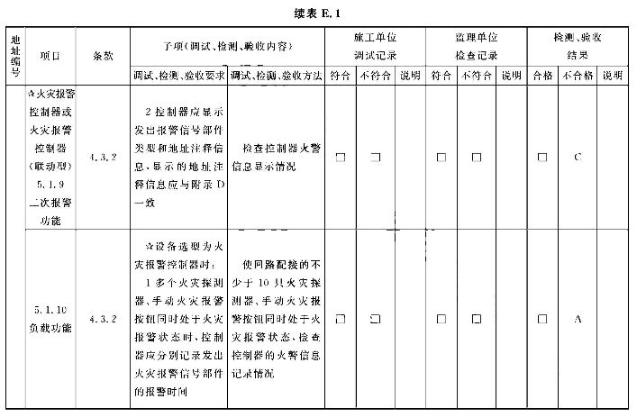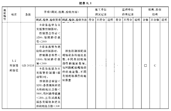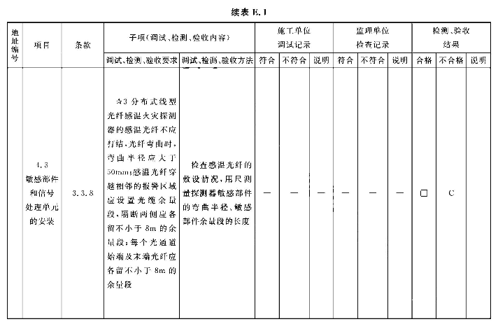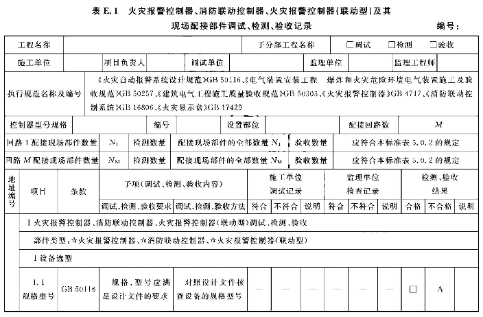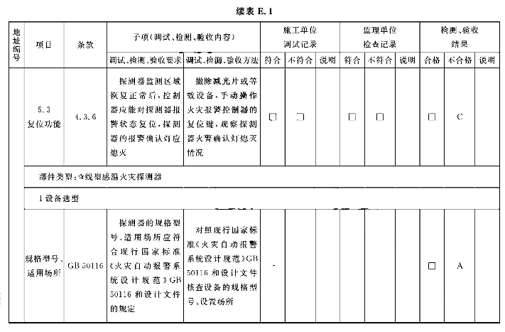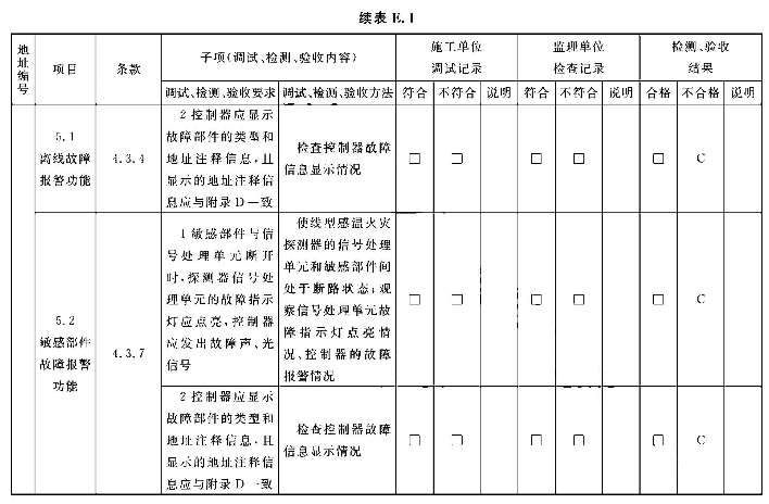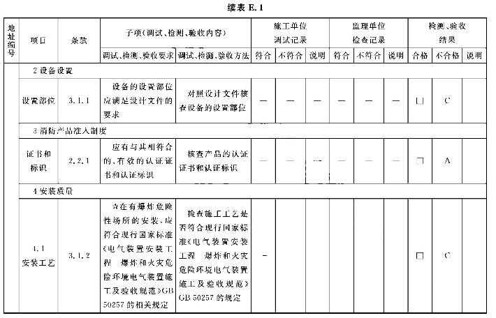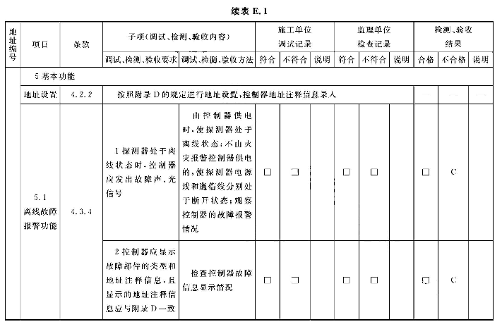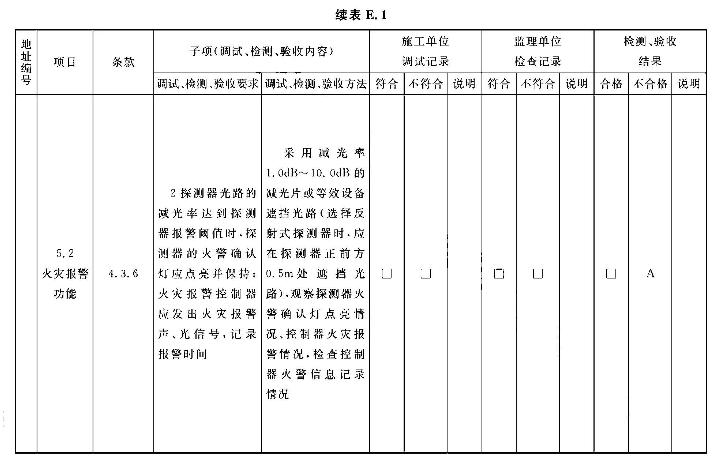 E.0.3 本附录各表中带有“☆”标的项目和子项内容为可选项,当现场部件的调试、工程检测、工程验收不涉及此项目或子项时,调试、检测、验收记录不包括此项目或子项。