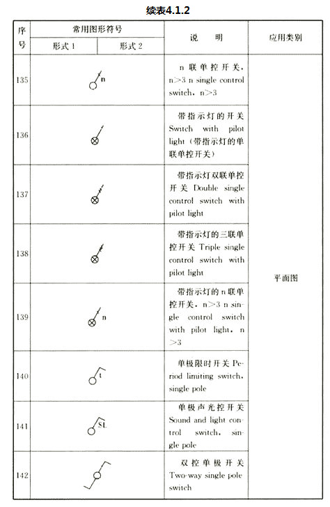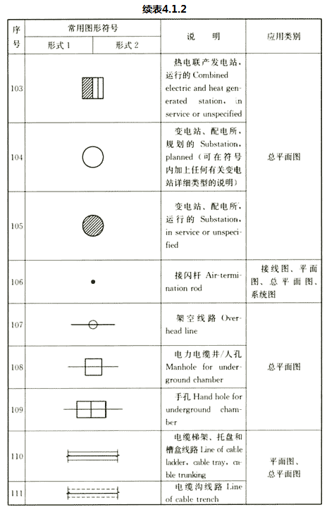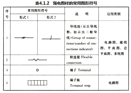 4.1.4 图样中的电气线路可采用表4.1.4的线型符号绘制。