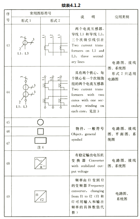 表4.1.2里序号45图形符号一般用于指示仪表等,序号46图形符号一般用于记录仪表等。