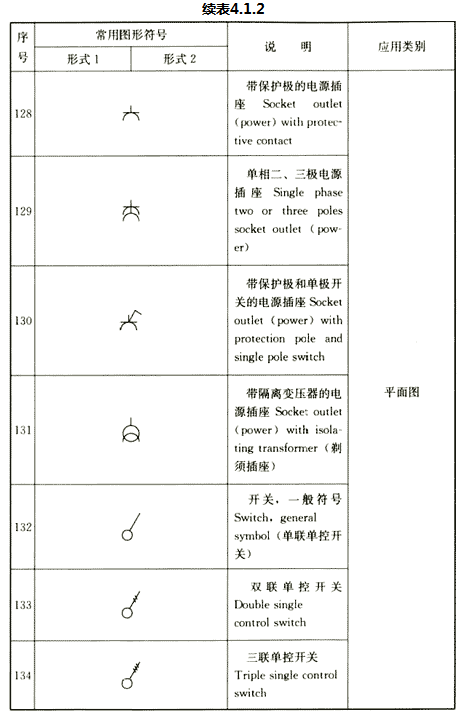 当电源插座需要区分不同类型时,宜在符号旁标注下列字母:1P-单相;3P-三相;1C-单相暗敷;3C-三相暗敷;1EX-单相防爆;3EX-三相防爆;1EN-单相密闭;3EN-三相密闭。