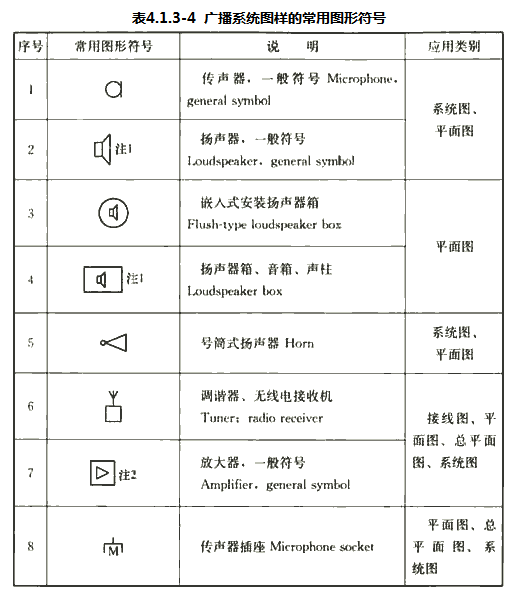 4 广播系统图样宜采用表4.1.3-4的常用图形符号。