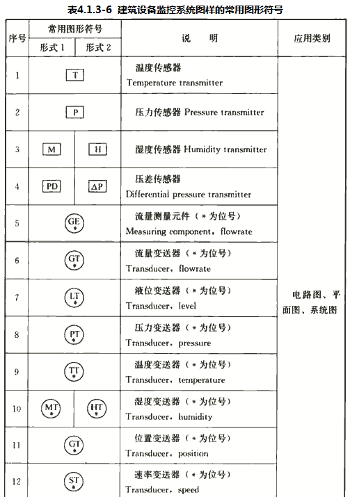 建筑设备监控系统图样宜采用表4.1.3-6的常用图形符号。