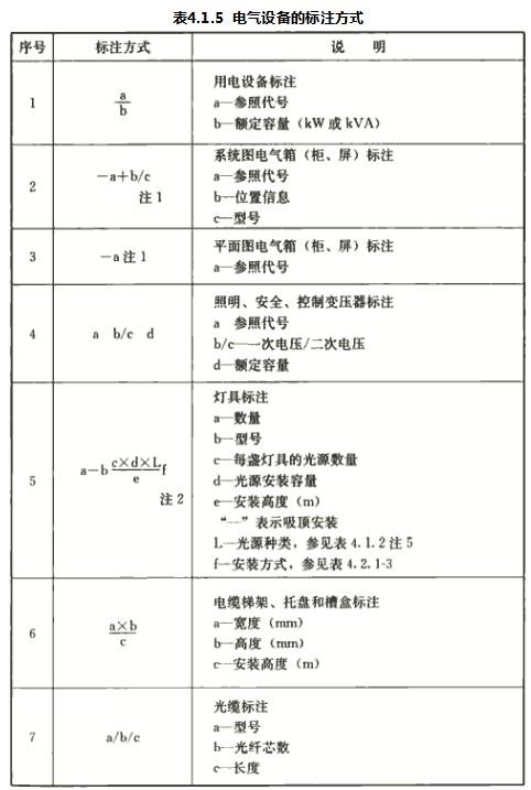 4.1.5 绘制图样时,宜采用表4.1.5的电气设备标注方式表示。