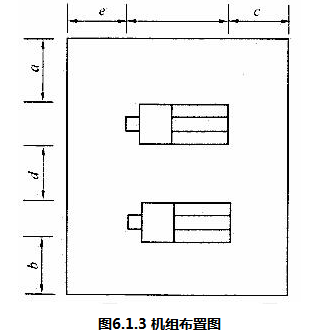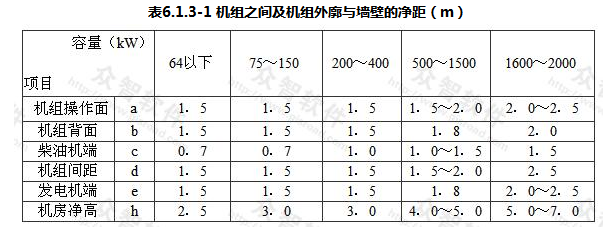 3)机组之间、机组外廊至墙的净距应满足设备运输、就地操作、维护检修或布置辅助设备的需要,并不应小于表6.1.3-1及图6.1.3的规定。