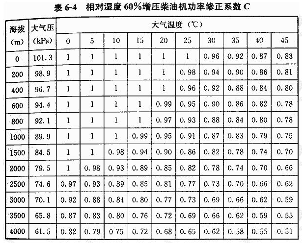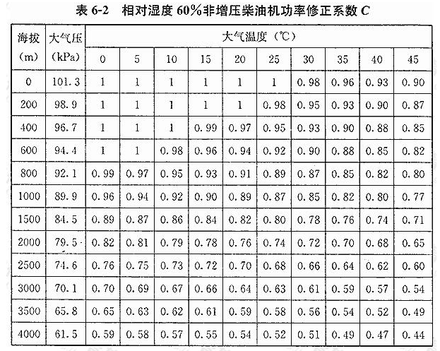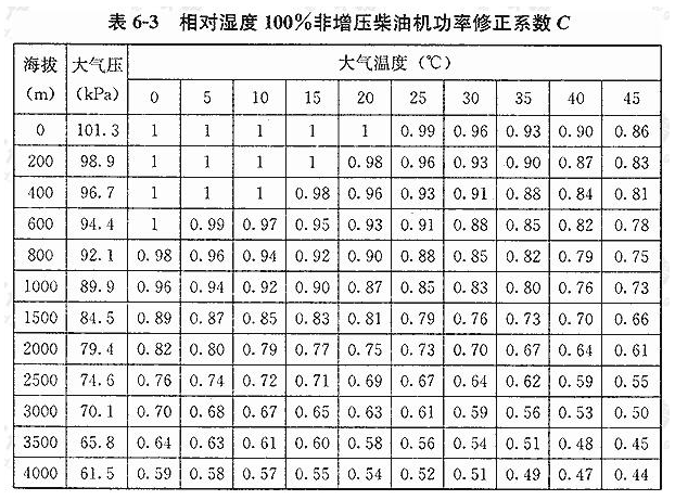 如果外界气压、温度、湿度等条件不同时,则应按照表6-2~表6-5中所列之校正系数进行校正。