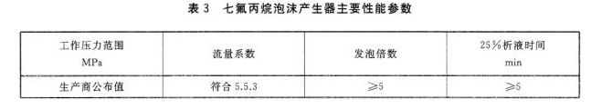 按照6.7、6.8的规定进行试验,七氟丙烷泡沫产生器主要性能参数应符合表3的规定。