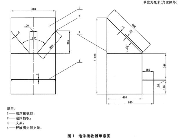 启动试验系统,使通过七氟丙烷泡沫产生器的泡沫喷射在泡沫接收器(见图1)中心位置,待喷射稳定后用析液测定器(见图2)接收泡沫,同时启动秒表计时,接满后立即用刮板刮平。
