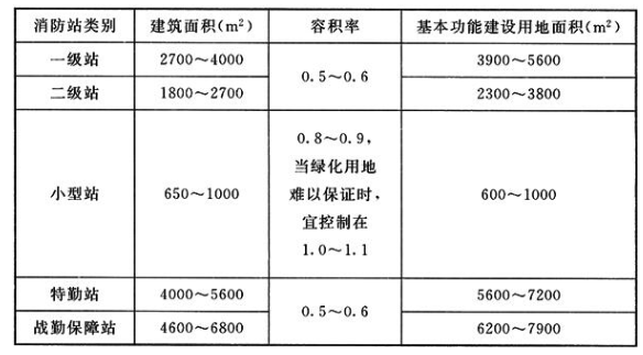 下表给出了满足消防站使用功能需要的基本功能建设用地面积指标,该指标不包括绿化和车道等非基本功能建设用地,各地在消防站规划建设时可参照执行。