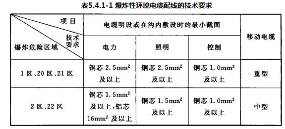 5.4.1 爆炸性环境电缆和导线的选择应符合下列规定: