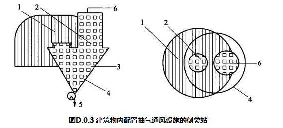 建筑物内配置抽气通风设施的倒袋站(图D.0.3):