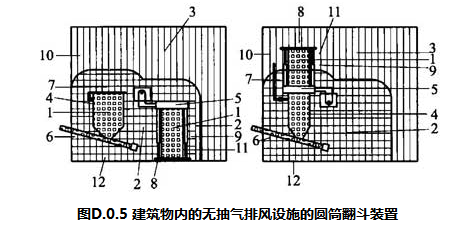 D.0.5 建筑物内的无抽气排风设施的圆筒翻斗装置(图D.0.5):