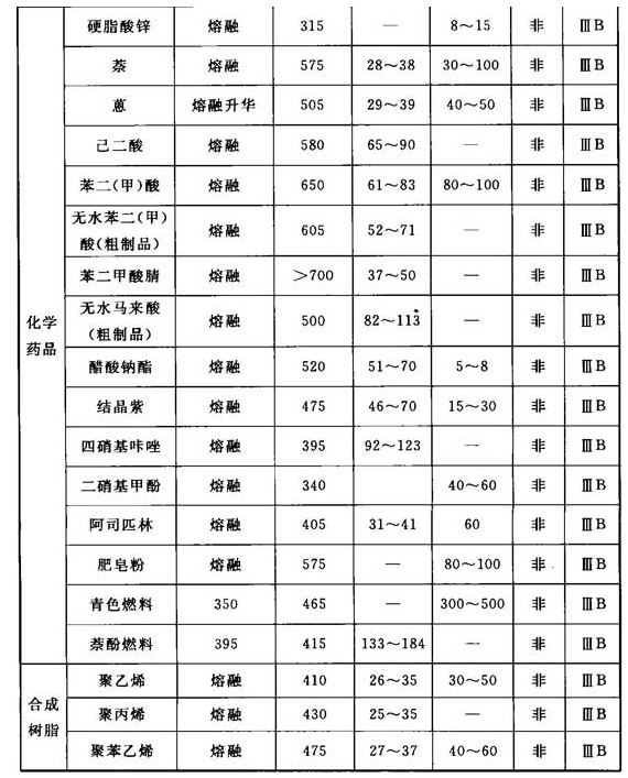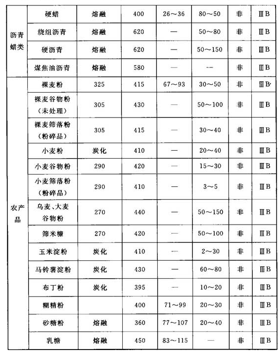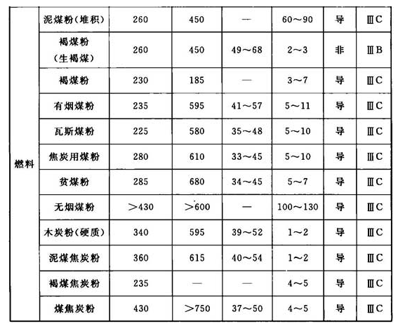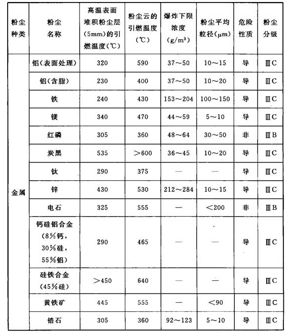 注:危险性质栏中,用“导”表示导电性粉尘,用“非”表示非导电性粉尘。