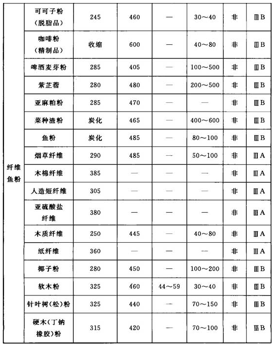 可燃性粉尘特性举例