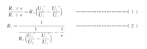 R1可以使用R0和四个电压值U1、U1'、U2和U2’以及电压检测设备内阻r,代入式(1)或式(2)来计算。
