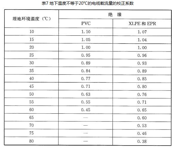 7.4.3 电缆敷设的环境温度与载流量校正: