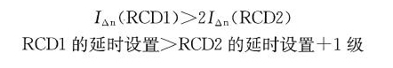 多级装设剩余电流保护器时,在动作时限(△t)和额定剩余电流动作值(I△n)应有选择性配合。选择性配合应符合以下两个条件: