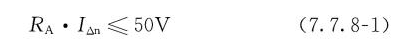 式中:RA——外露可导电部分的接地极和保护接地导体的电阻之和(Ω);