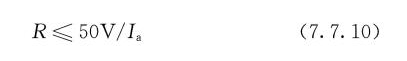 在发生带电导体对外露可导电部分或对地的单一故障时,应满足公式(7.7.9-1)的要求。并采取措施避免发生第二次故障,造成人体同时接触不同电位的外露可导电部分而产生危险。