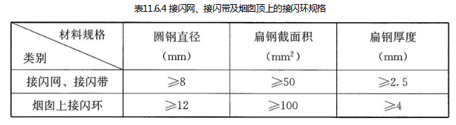 宜采用热浸镀锌圆钢或扁钢,其尺寸应符合表11.6.4的规定。