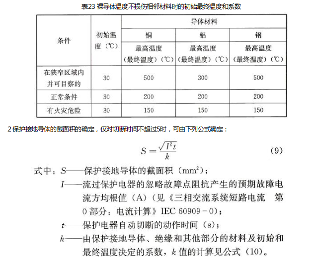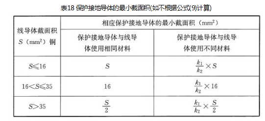 16895.21-2011中的第411.3.2条。保护接地导体的截面积可按公式(9)计算,也可按表18进行选择。这两种方法都应考虑本标准第12.4.7条的规定。保护接地导体的端子大小,应能容纳按本条所规定截面积的导体。TT系统详见本标准第12.4.12条3款规定。