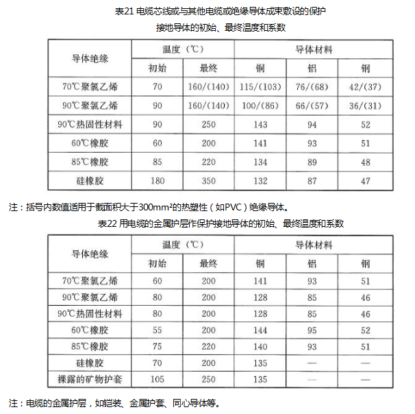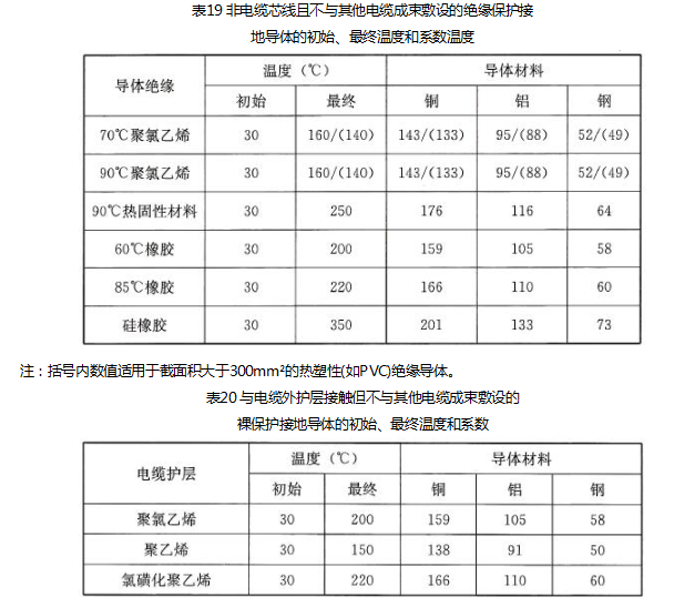 2 k2是保护接地导体的k值,是按表 19~表23中适用的有关参数选择的;