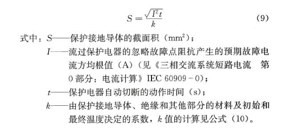 保护接地导体的截面积的确定,仅对切断时间不超过5时,可由下列公式确定: