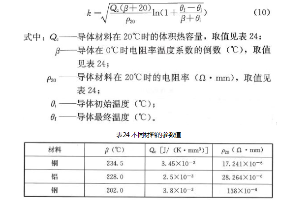 注:1 k1是线导体的k值,它是由公式 (10)导出或由 (低压电气装置 第4部分:安全防护 第43章:过电流保护》IEC
