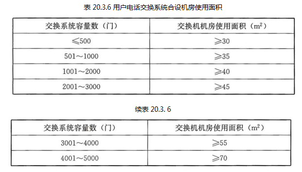 当系统机房合设且设备尚未选型时,机房使用面积宜符合表20.3.6的规定;