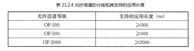 21.2.4 光纤信道的分级和其支持的应用长度,应符合表 21.2.4的规定。