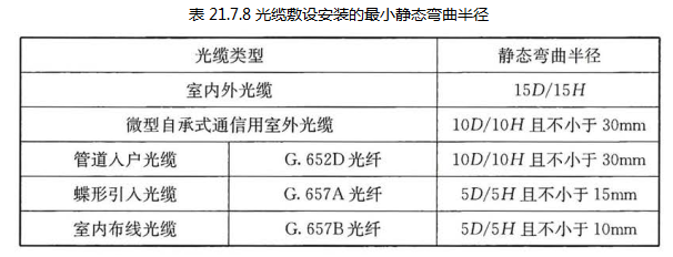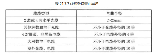 21.7.7 综合布线系统线缆的弯曲半径应符合表