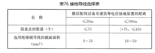 21.8.2 进线间、设备间、电信间应设置等电位接地端子箱(板)。每个配线柜(架)应采用两根不等长、其截面积不小于