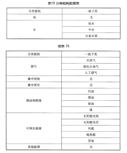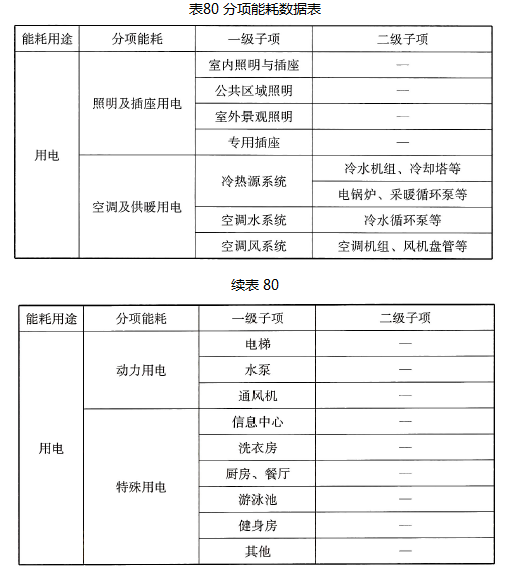 建筑电类分项能耗数据应按表80的规定进行。