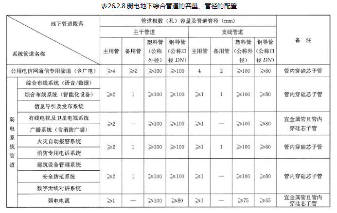 地下综合管道宜按弱电各线缆敷设容量需求进行不同管道材料与管径的组合配置。