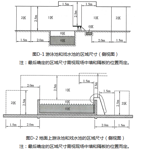 0区:指水池的内部,包括水池墙壁上或地面上的凹入部分;洗脚池内部;喷水柱或人工瀑布内部及其底下的空间。