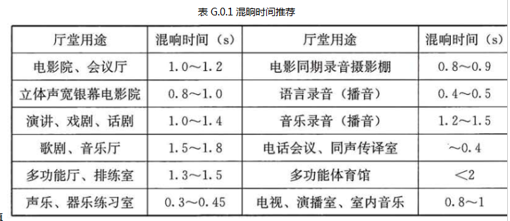 G 各类建筑物的混响时间推荐值及缆线规格计算与选择
