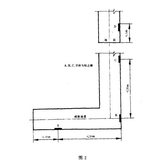 如果天花板的高度较小,也可以在图4中C、D的位置设置标志,标志的中心点距地面高度h3应在1.3 m~1.5 m之间。