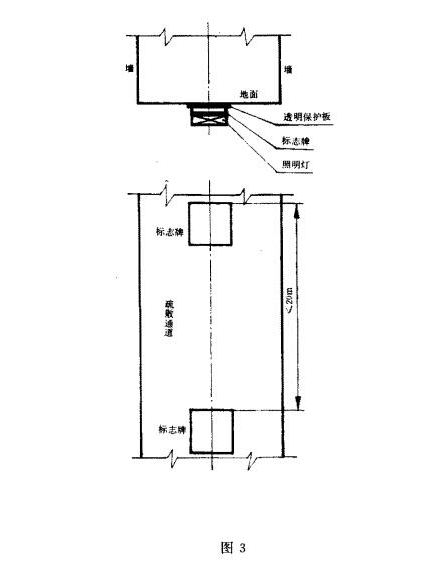 m之间,也可设置在地面上(如图3所示)。标志的间距不应大于10 m。标志的照明应满足6.10.4条和6.13条的要求。