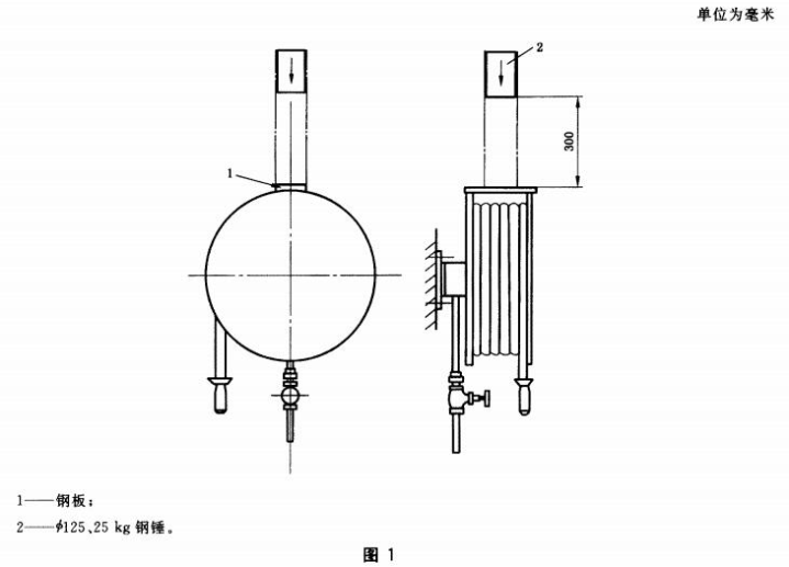 mm处自由落下冲击钢板1次,落点为两侧板中央位置。冲击后再按6.2进行试验,其结果应符合5.2规定。