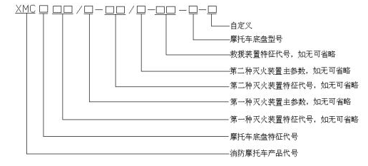 d)在SAD125摩托车底盘上改装的,配置100kg干粉灭火剂的三轮消防摩托车,其型号为XMC3GF/100-SAD125;