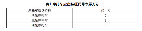 4.2.1 摩托车底盘特征代号表示方法见表1。