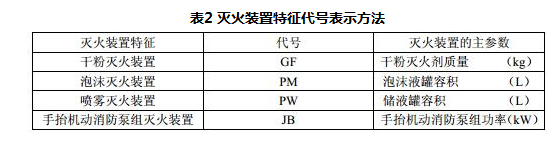 4.2.2 灭火装置选择所配备的最主要灭火装备,特征代号表示方法见表2。