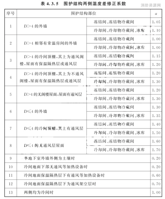 a——围护结构两侧温度差修正系数,可按表4.3.5的规定采用。