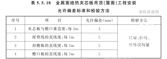 注:H为墙面全高;L为墙面水平长度。5.5.18 金属面绝热夹芯板吊顶(屋面)工程安装允许偏差标准和检验方法应按表5.5.18中的规定执行。