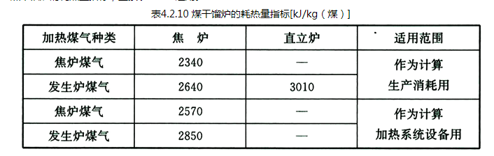 煤干馏炉的耗热量指标,宜按表4.2.10选用。